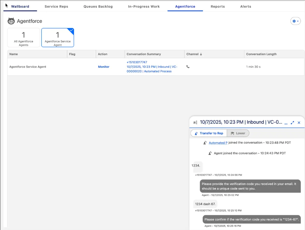 Supervisors can track live agent interactions and transcripts from the Agentforce tab in Omni Supervisor.
