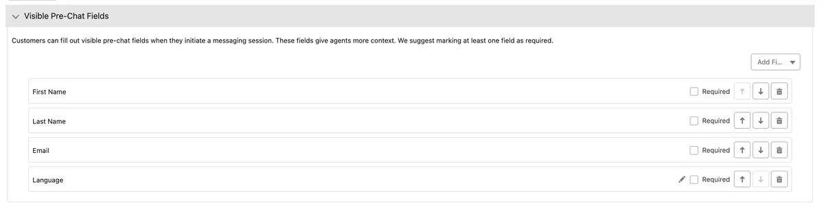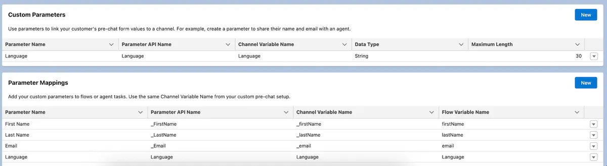 - Save your changes. These parameters will capture the pre-chat values entered by the user.