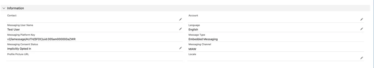 The Messaging End User (MEU) record will automatically reflect the name and language provided in the pre-chat form.